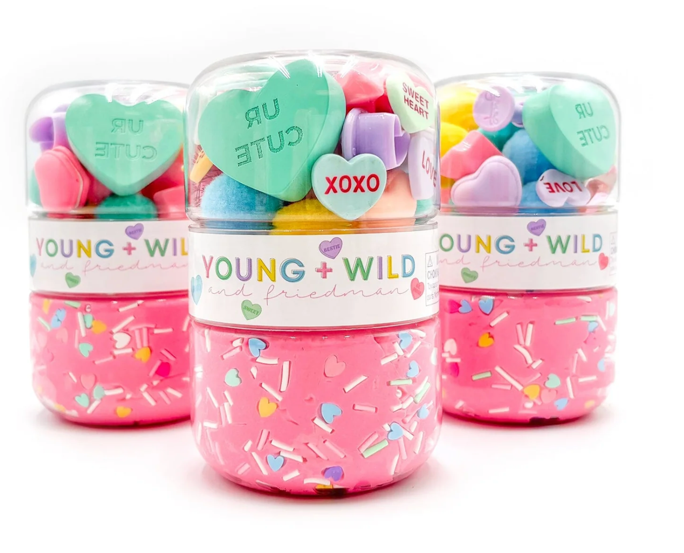 The Pastel Hearts Grab & Go Dough Jars come with one jar of our amazing all-natural sensory dough and a separate screw-on jar filled with everything you need to make the cutest scene!