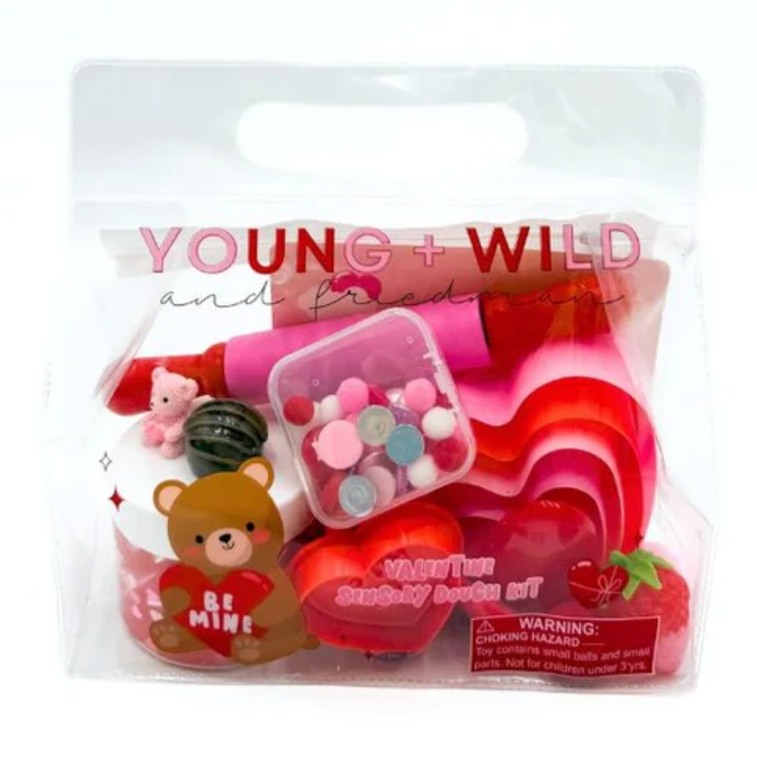 Our Valentine Sensory Dough Bag contains one jar of our amazing all-natural sensory dough and everything you need to make the cutest Valentine's Day scene - including a rolling pin and more!