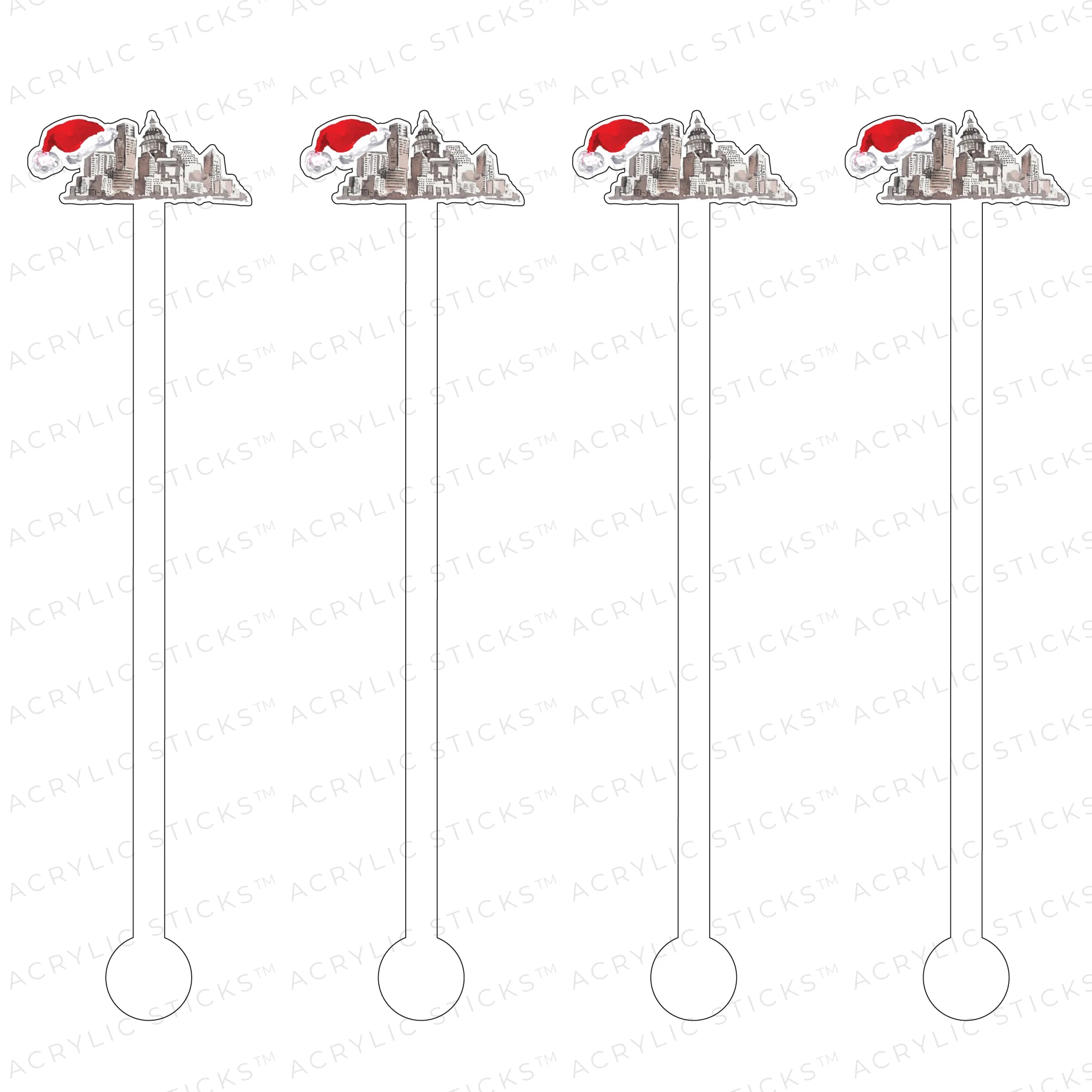 Christmas Santa Hat Austin Skyline Acrylic Stir Sticks - Pack of 4