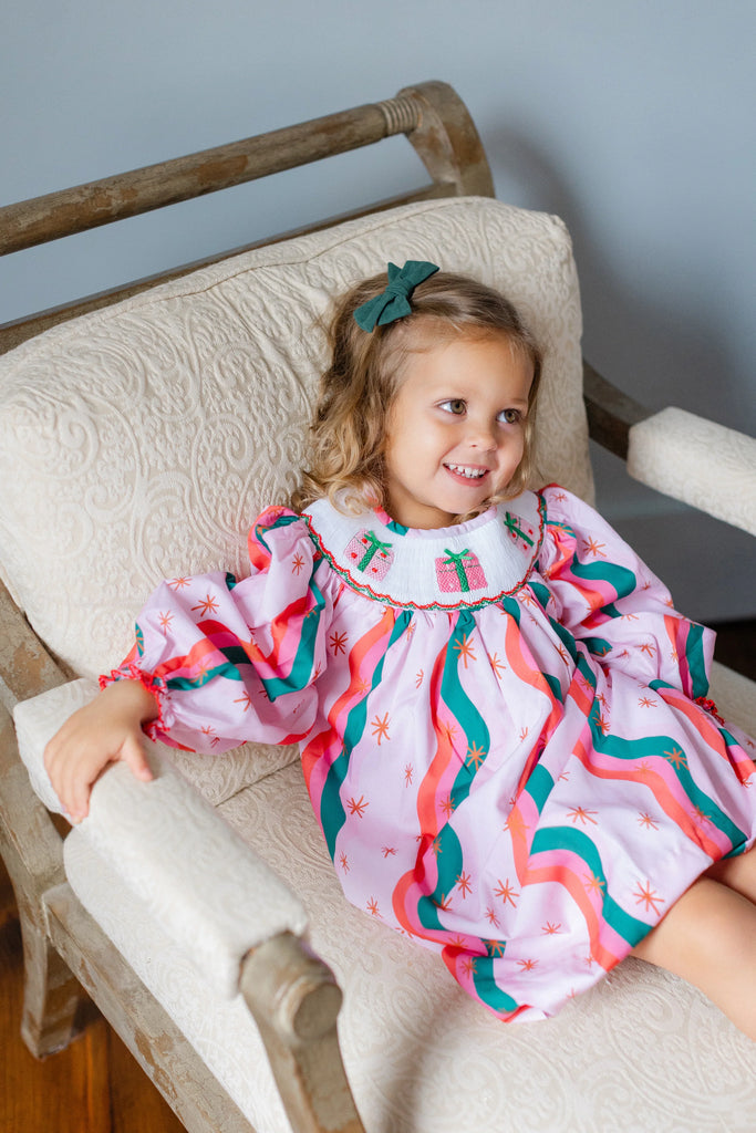 Unwrap the magic of Christmas with this cheerful gift themed dress!