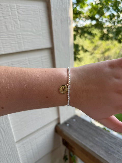 Add a touch of timeless charm to your look with the Enewton Classic Pearl 3mm Bead featuring our Signature Cross Circular Charm. Designed to keep up with your active lifestyle, this piece is perfect for sweating, showering, and swimming without losing its shine. Playfully elegant and effortlessly durable, it’s the perfect everyday accessory that moves with you.