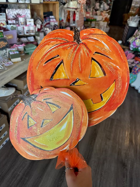 Bring festive fun to your Halloween with this Orange Jack-O-Lantern Metal Pair! Perfect for hanging on doors or placing on yard stakes, these cheerful decorations add a bright, spooky touch wherever you display them. Durable metal construction ensures they’ll glow with Halloween spirit year after year.