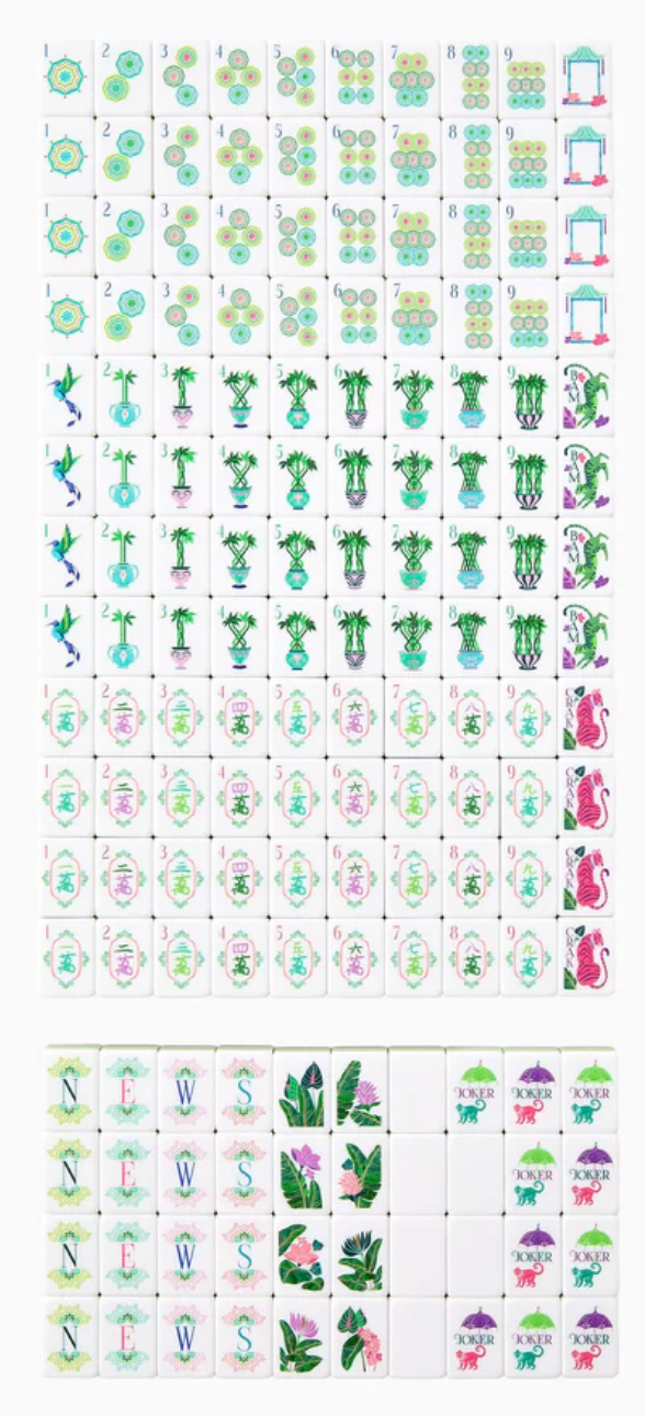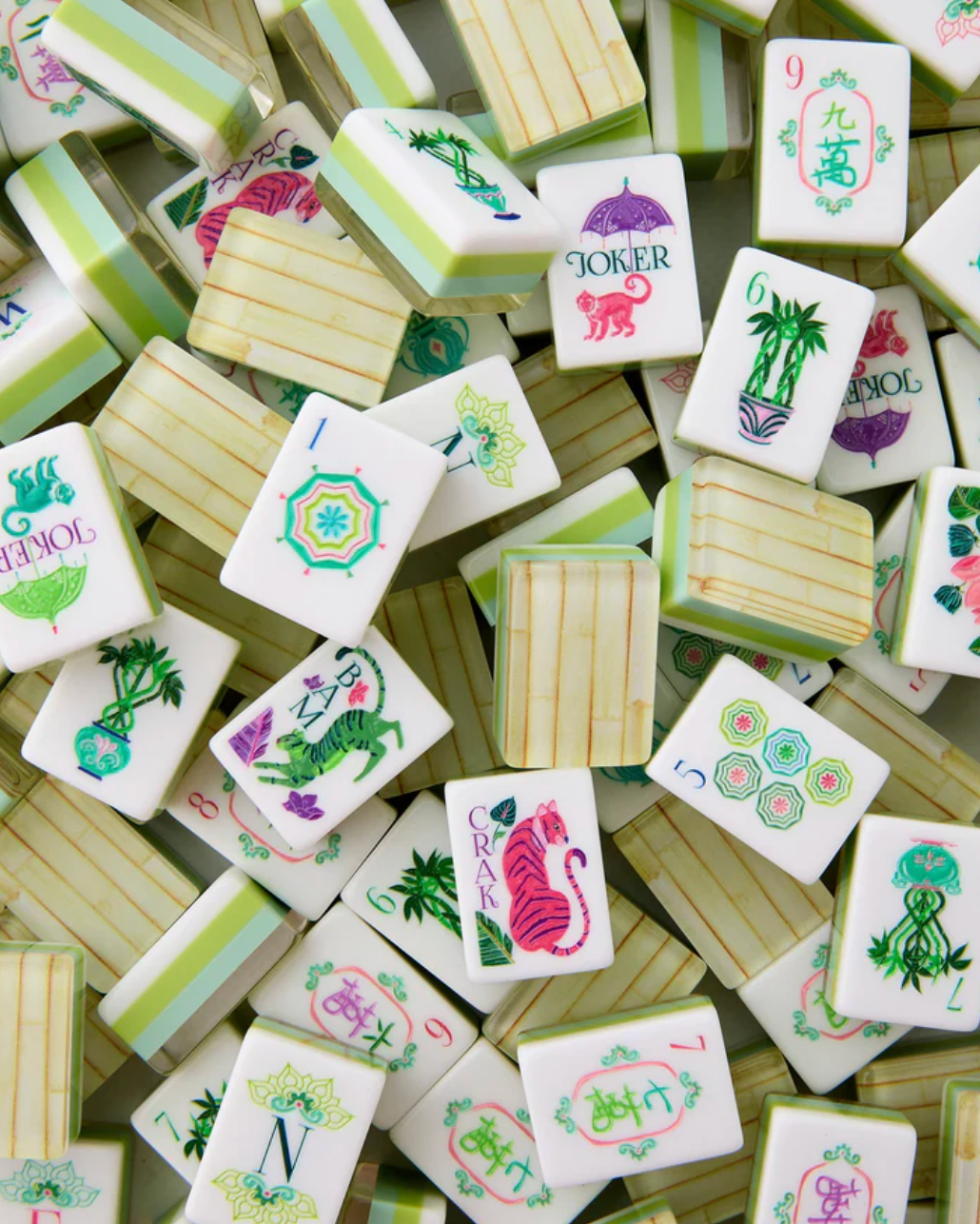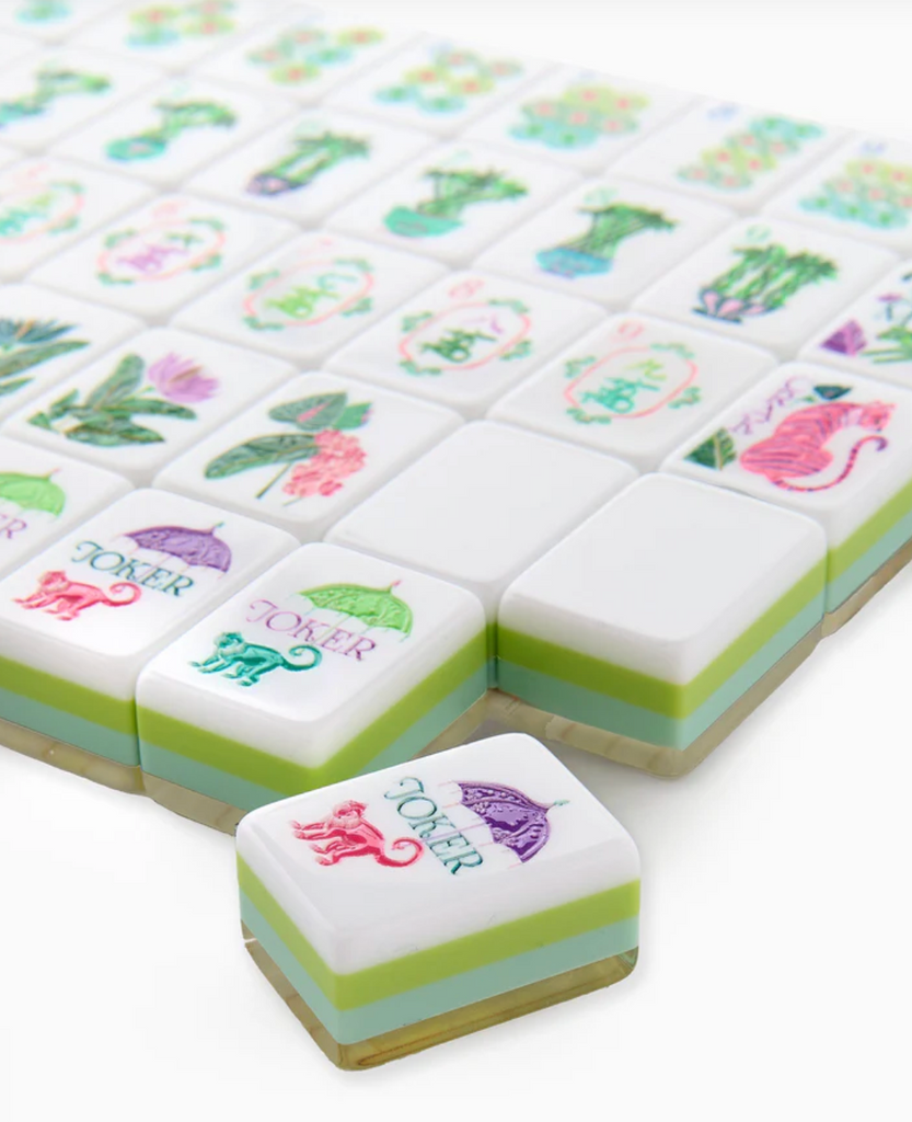 Elegant, refined, and effortlessly chic, the Palm Royale Tiles bring a touch of natural sophistication to your game. Featuring a bamboo-inspired backing, these tiles evoke a sense of timeless beauty, while layers of fresh green and classic ivory hues create a serene yet striking design. Perfect for players who appreciate elevated style and a nod to nature, the Palm Royale Tiles transform every table into a royal retreat.