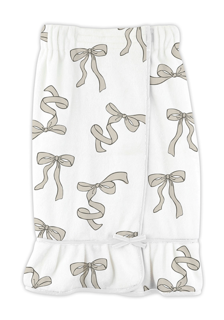 - Blissfully cozy, Bella's plush spa wrap is the ultimate apres-shower delight. With ultra-soft fabric and a sweet ruffle accent, you won't want to get dressed. Never again will your towel slip off while blow drying your hair or applying makeup