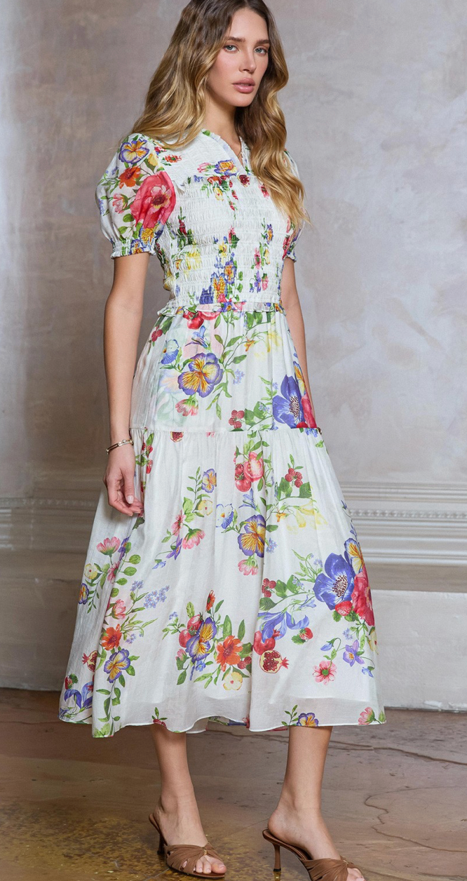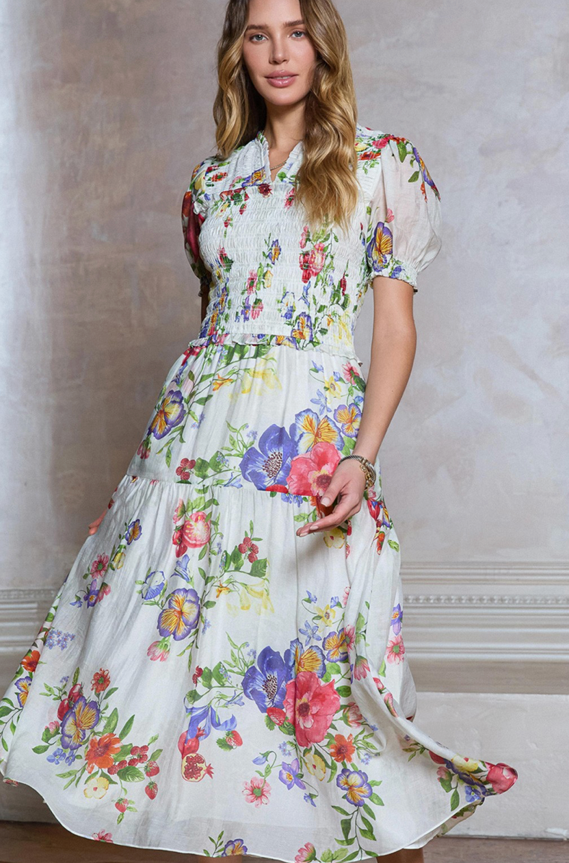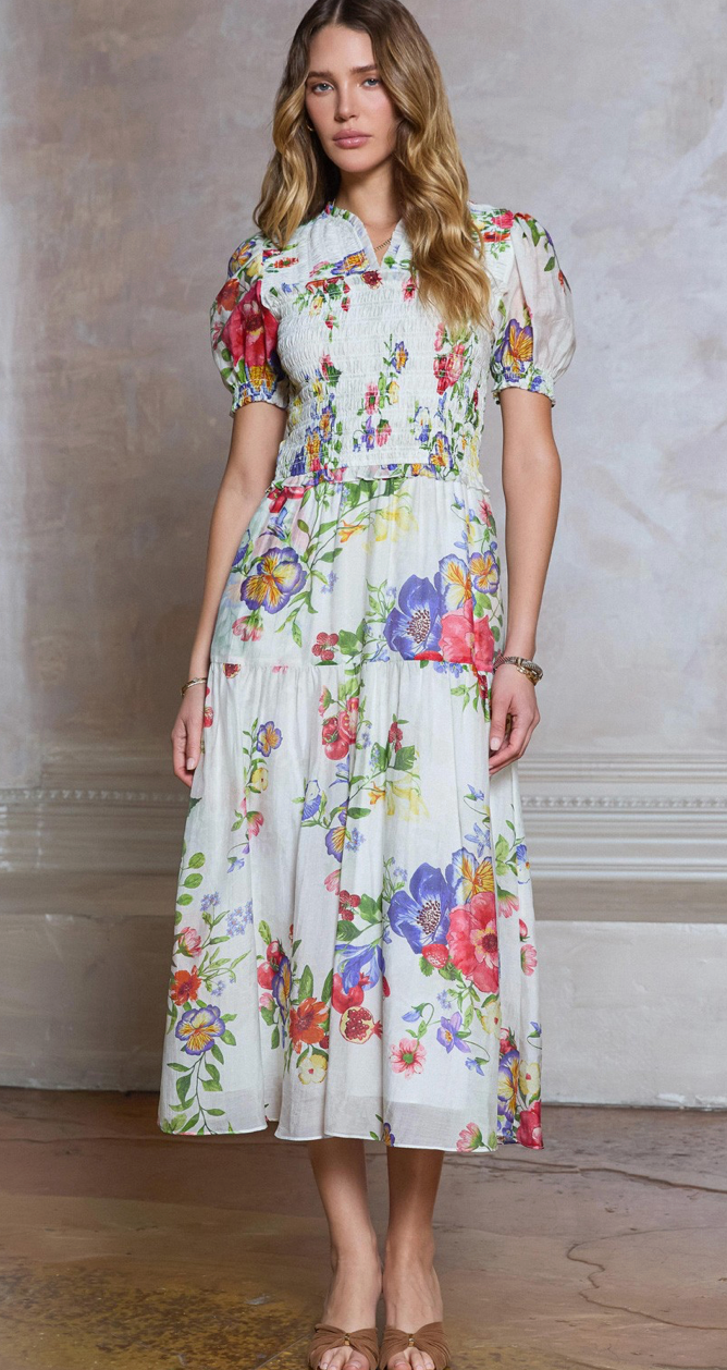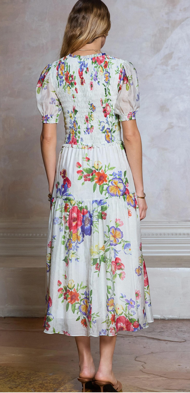 Floral Printed Smocked Midi Dress