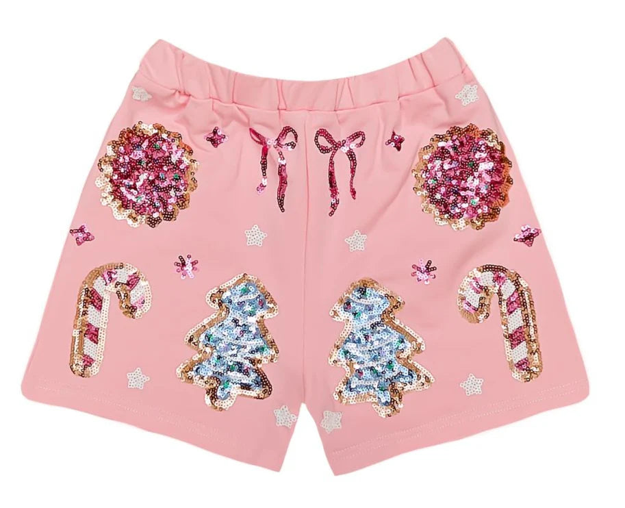 Add a sprinkle of sparkle to her outfit with these Pink Sequin Cookies Shorts! Soft, comfortable, and dazzling, they’re perfect for twirling, dancing, or just snacking on her favorite treats. Lightweight and fun, these shorts bring a playful pop of glittery charm to every day.