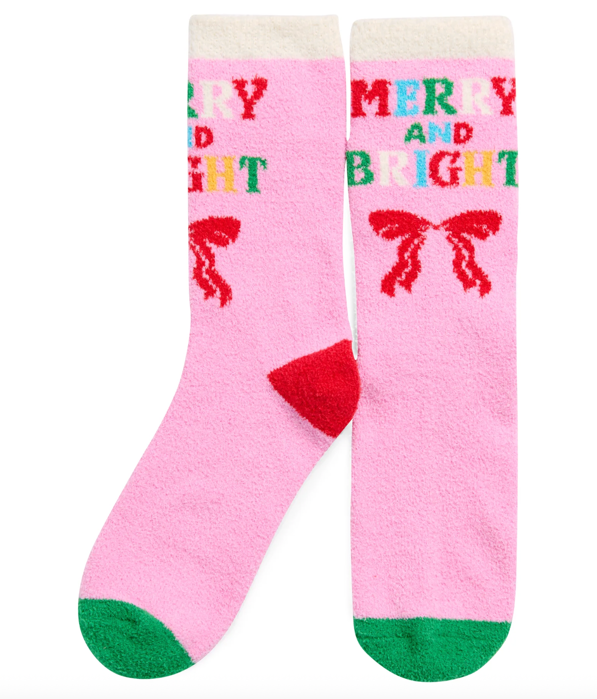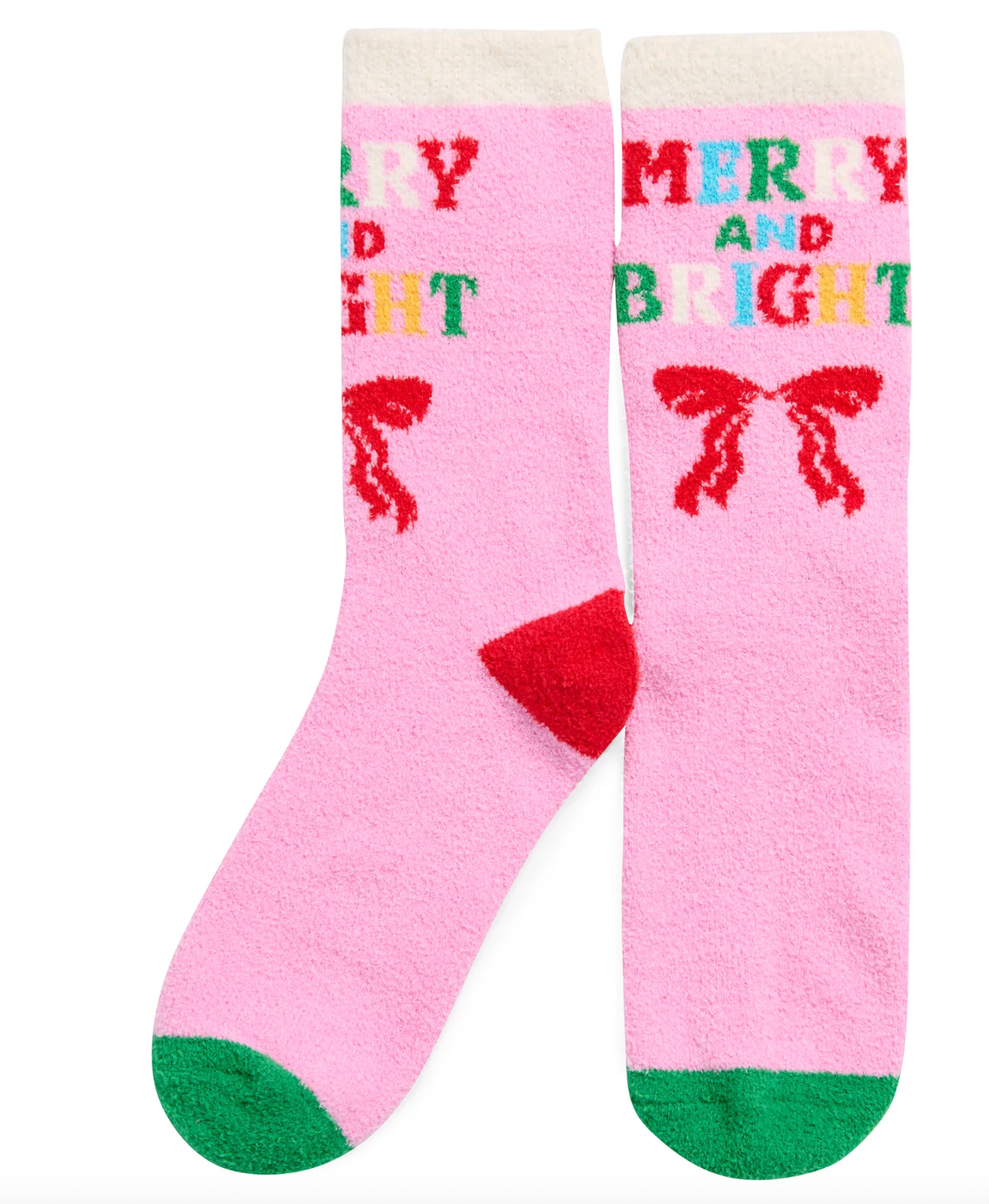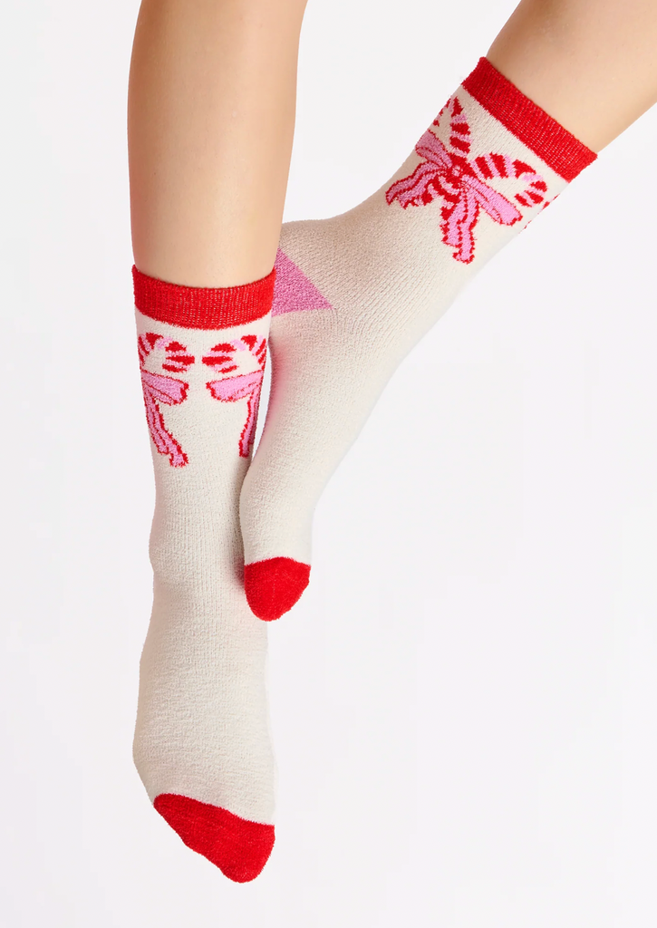 These socks are pure holiday happiness wrapped up in a cozy package! We adore the playful lettering and bold bow graphic that makes them an instant mood booster. The color combo feels nostalgic but fresh, giving classic cheer a fun twist. Perfect for gifting, or keeping your own toes toasty while trimming the tree.