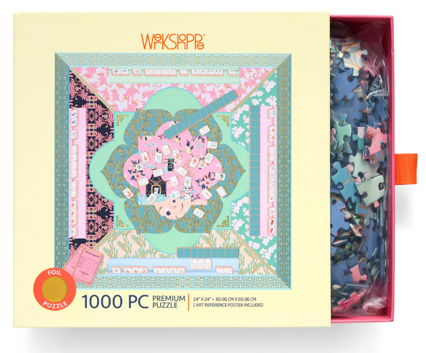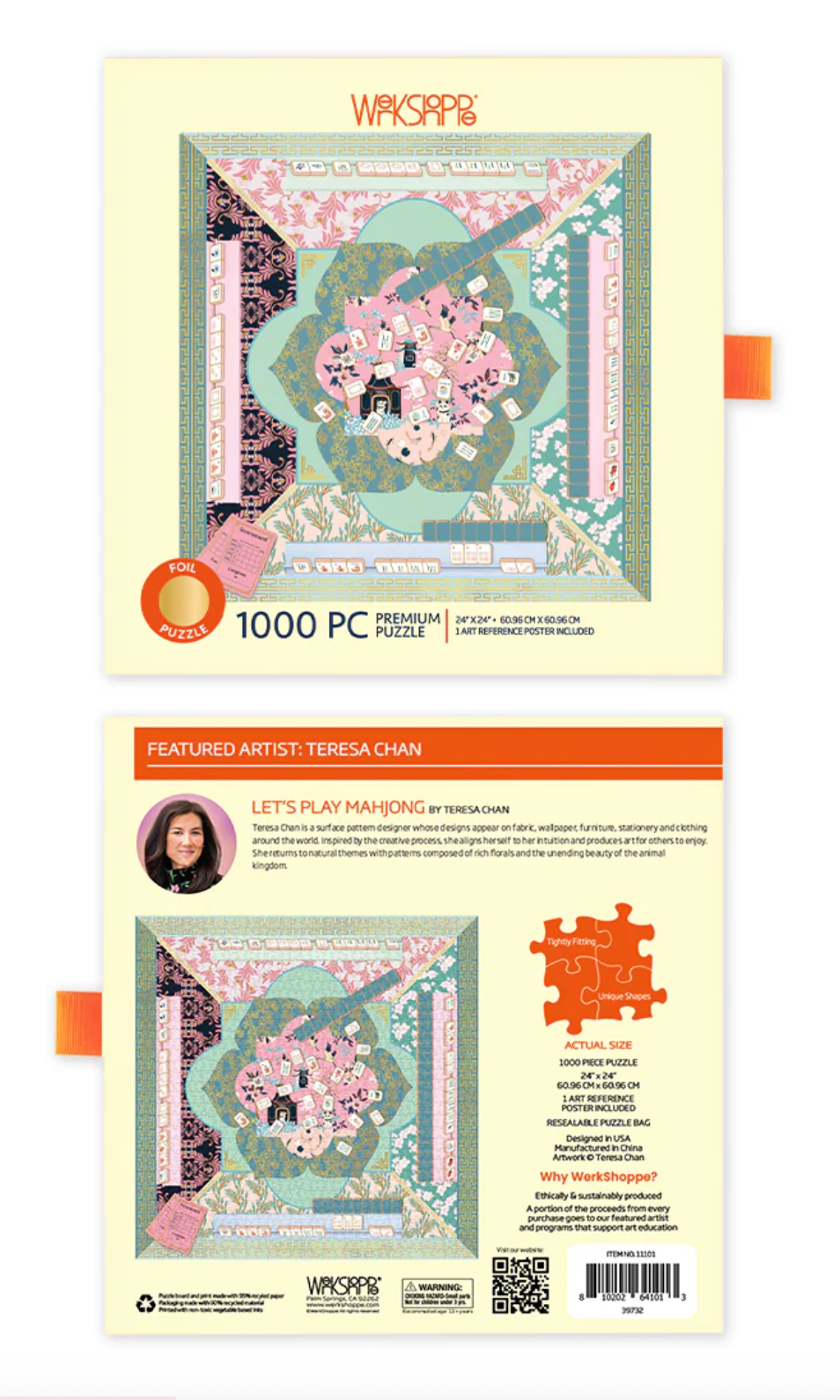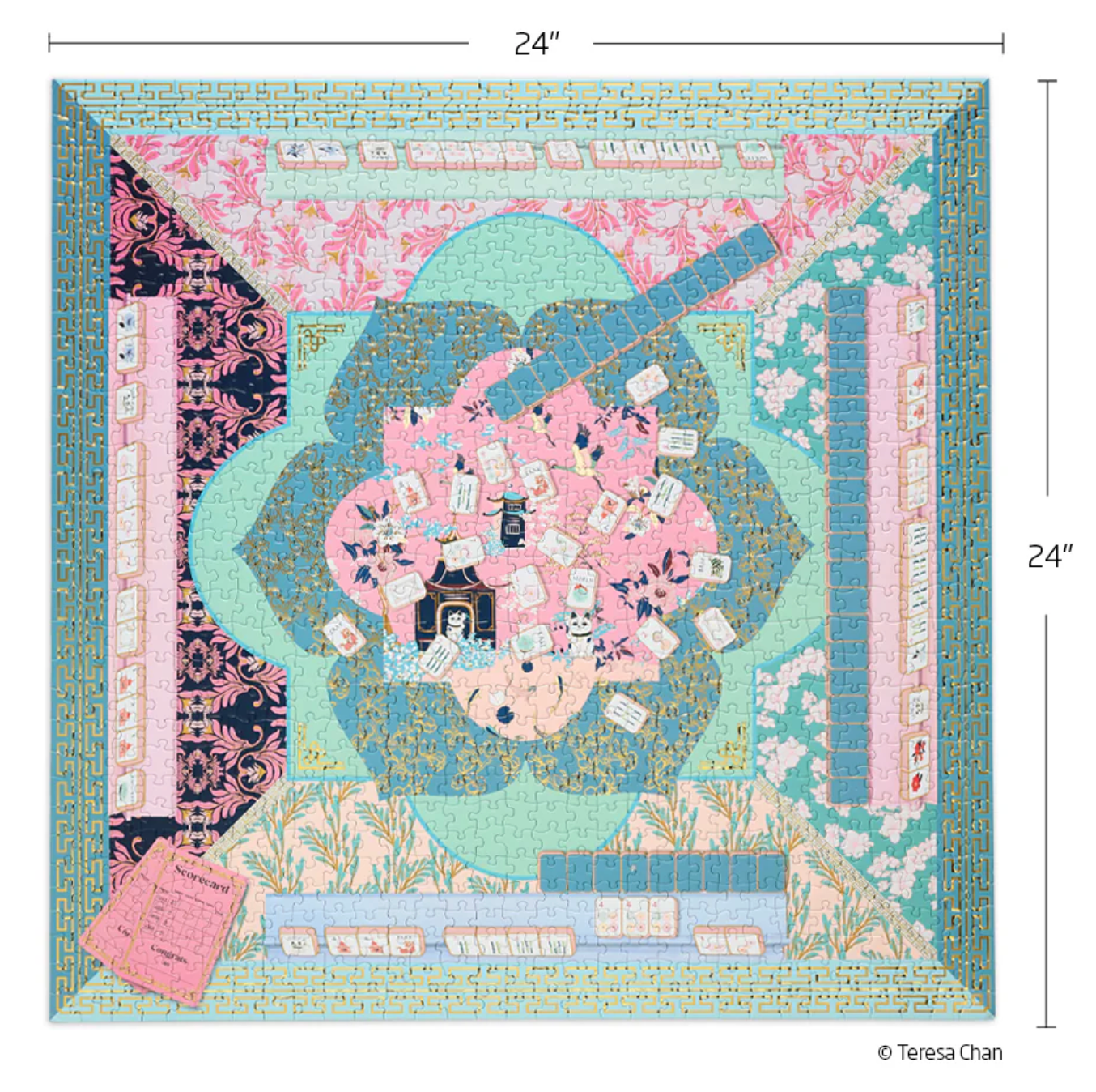 Gather your friends and family for a beautiful, challenging evening with the "Let's Play Mahjong" 1000-piece jigsaw puzzle by artist Teresa Chan. This stunning puzzle transforms the beloved game of Mahjong into a mesmerizing, artful centerpiece.
