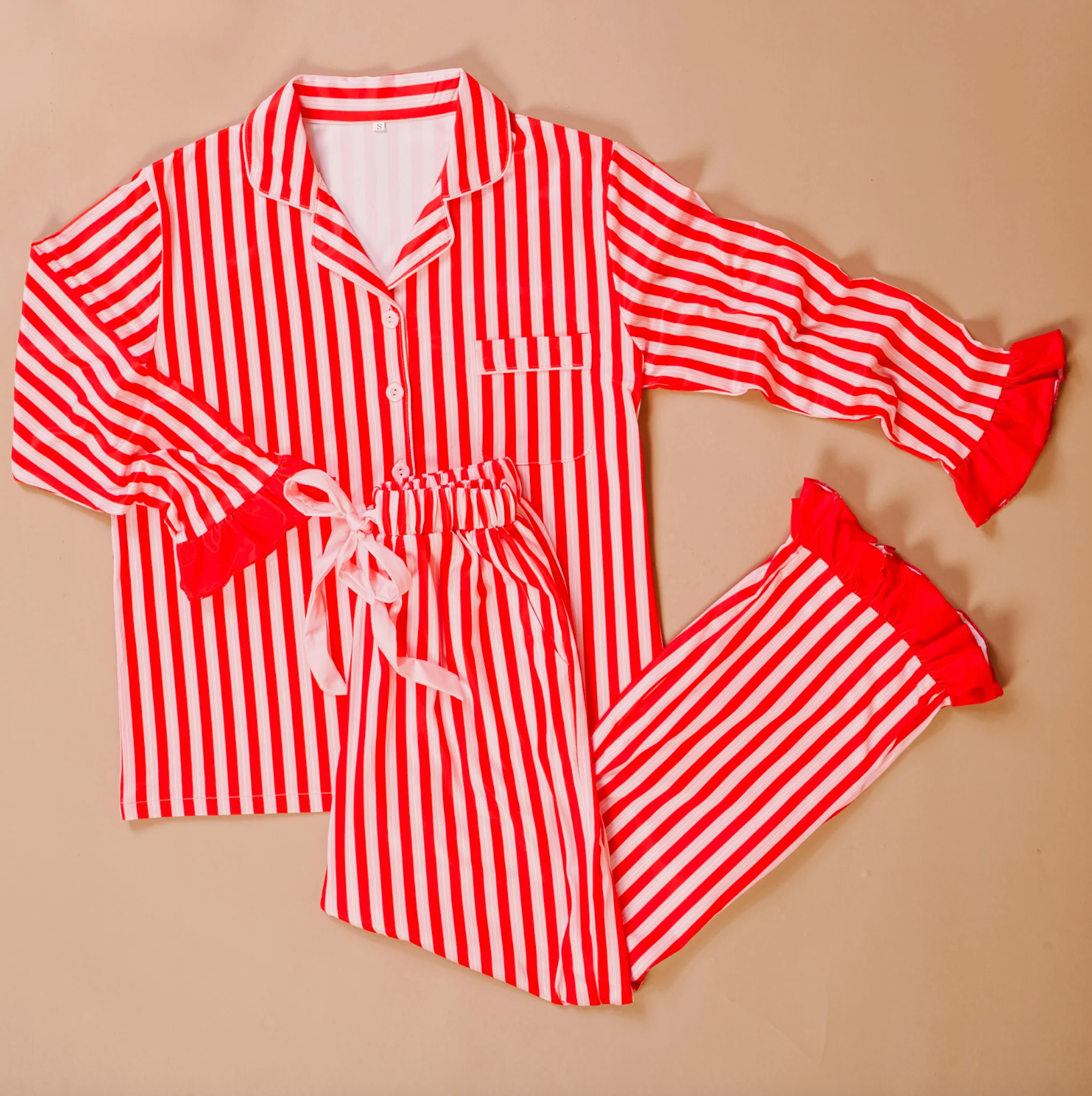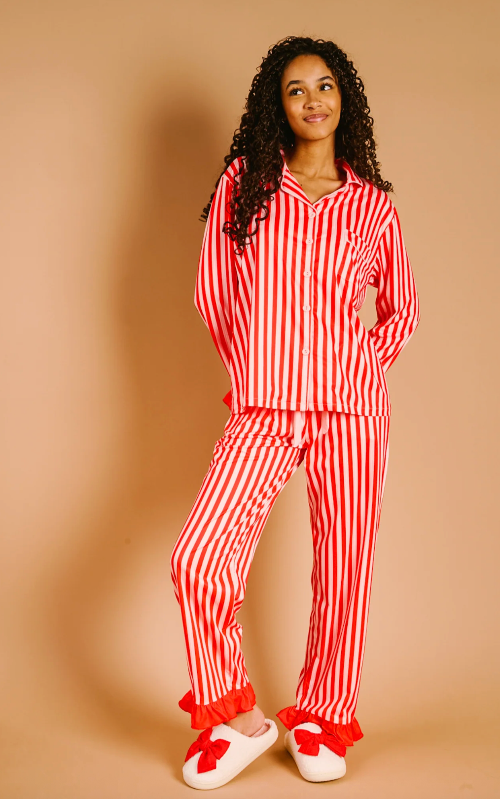 Unwrap comfort with our Sweet Dreams Pajama Sets. Soft, stretchy, and irresistibly cozy, these festive favorites come in two charming styles: long sleeve with pants or a long sleeve with shorts. Whether you're winding down or waking up, the relaxed fit and ultra-soft fabric make every moment feel a little more special. Finished with a pretty ribbon tie, each set comes ready to gift—no wrapping required.