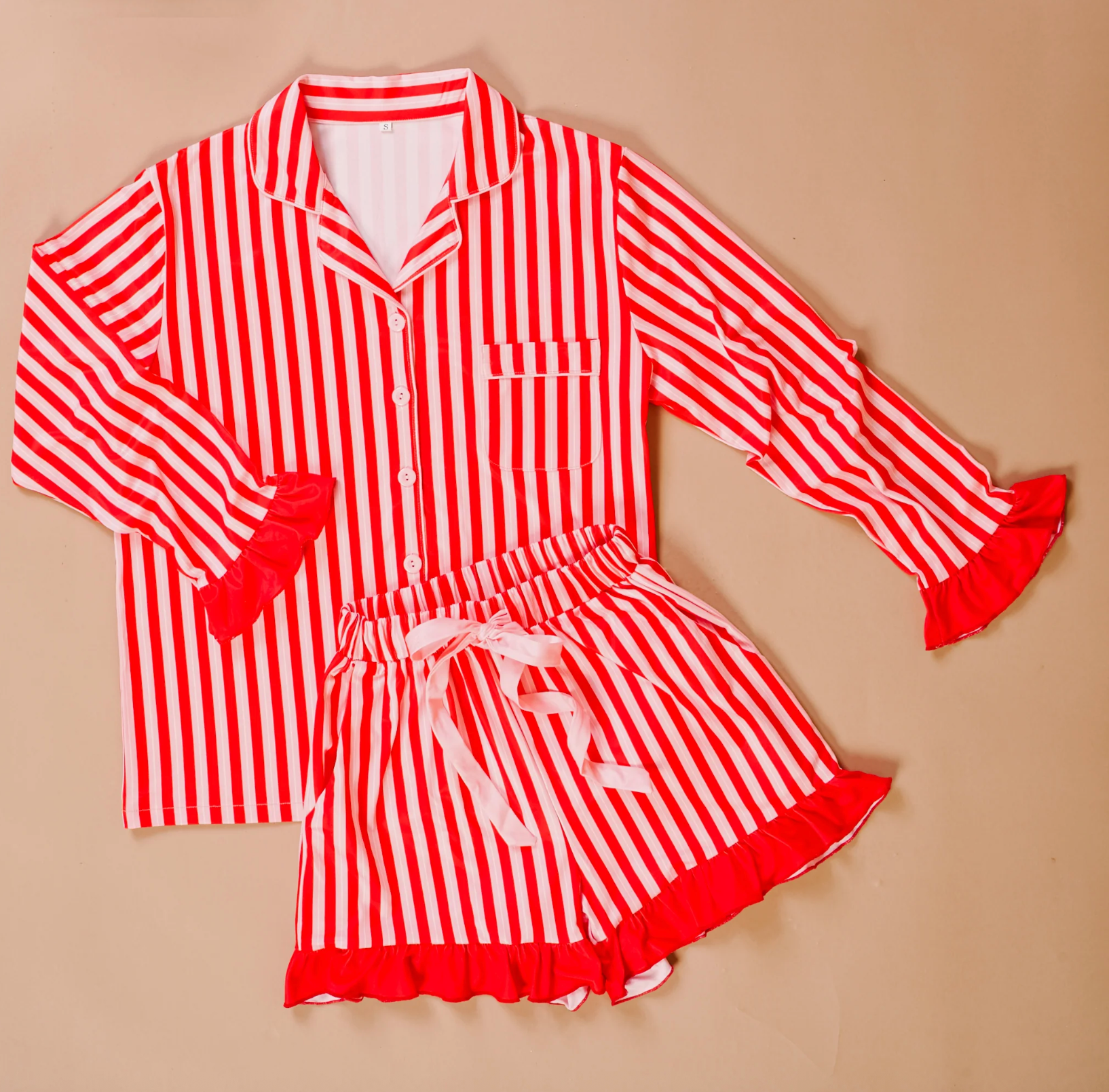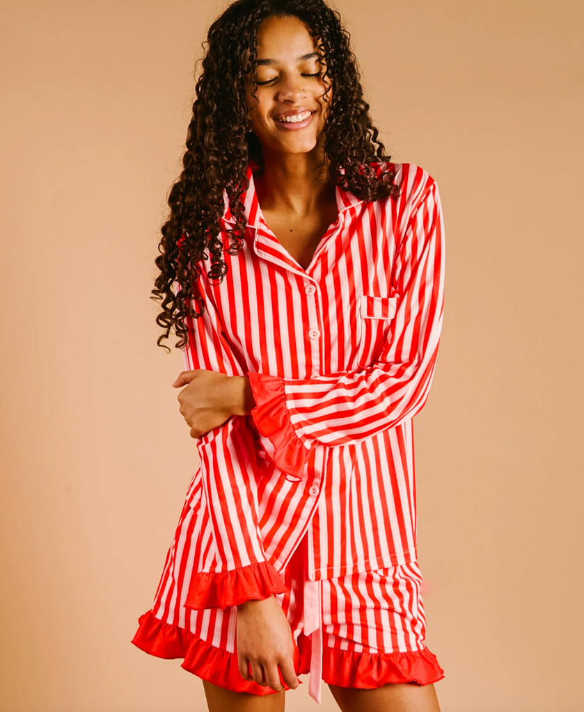 Unwrap comfort with our Sweet Dreams Pajama Sets. Soft, stretchy, and irresistibly cozy, these festive favorites come in two charming styles: long sleeve with pants or a long sleeve with shorts. Whether you're winding down or waking up, the relaxed fit and ultra-soft fabric make every moment feel a little more special. Finished with a pretty ribbon tie, each set comes ready to gift—no wrapping required.