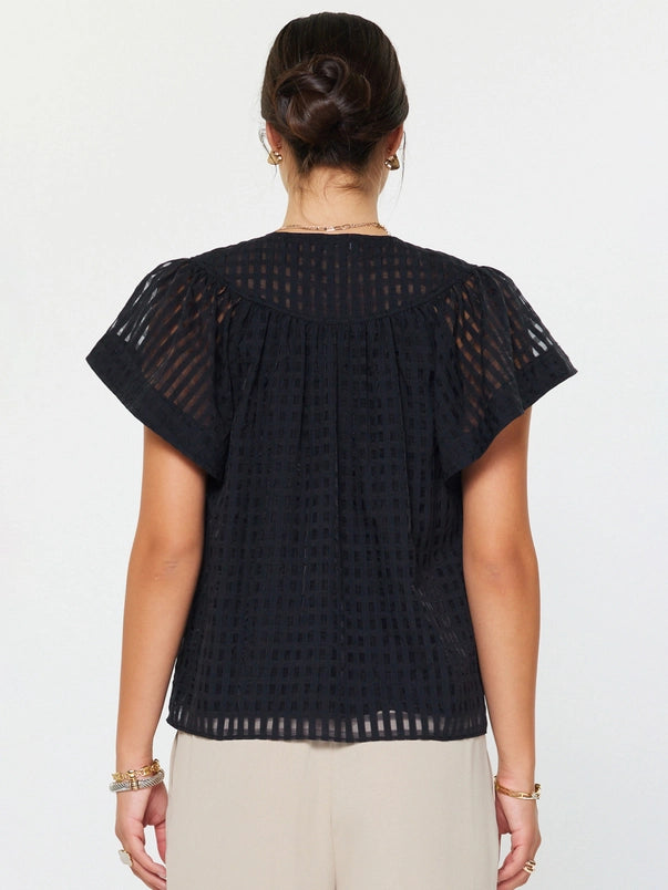 Elevate your casual wardrobe with this charming black gingham blouse! The classic checkered pattern brings timeless style with a modern twist, while the crisp short sleeves keep things breezy and comfortable. Perfect for pairing with jeans, skirts, or tailored trousers, this versatile piece transitions effortlessly from weekend brunch to office vibes. The structured fabric holds its shape beautifully, making it a go-to favorite that works harder than it looks. Simple, chic, and endlessly fun—because great style doesn't have to be complicated.