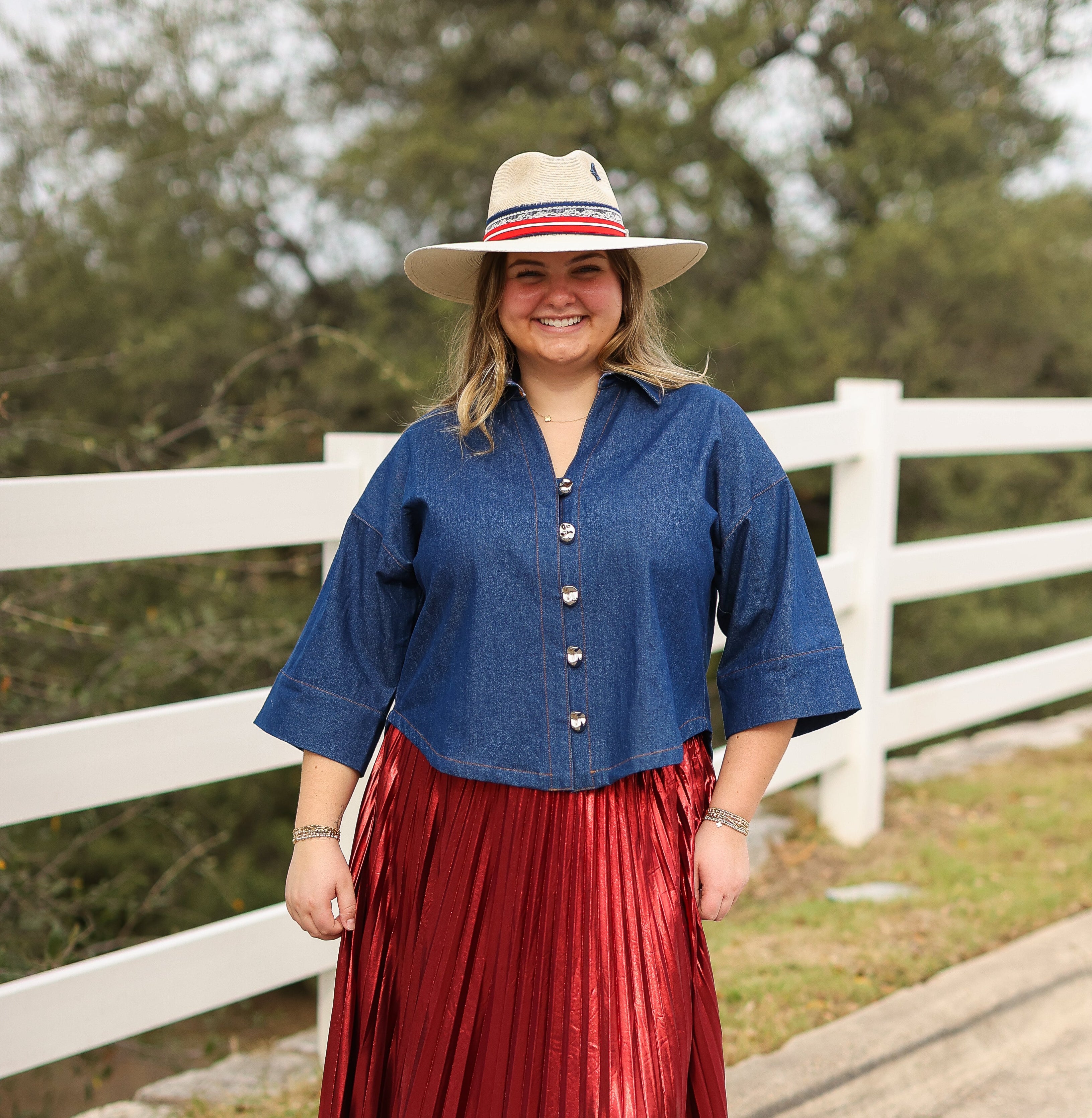 Dark Denim Collared Button Up Top
