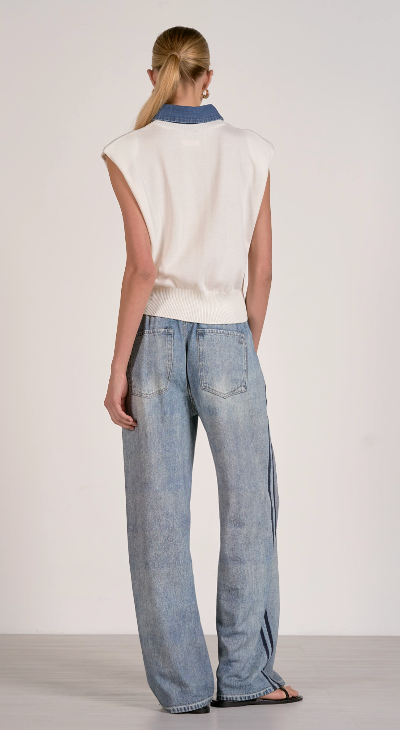 Off White Sleeveless Sweater Top