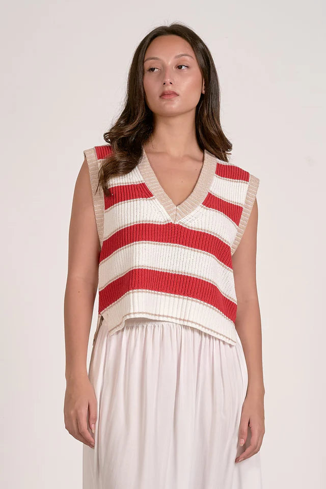Red & White Striped Sweater Vest