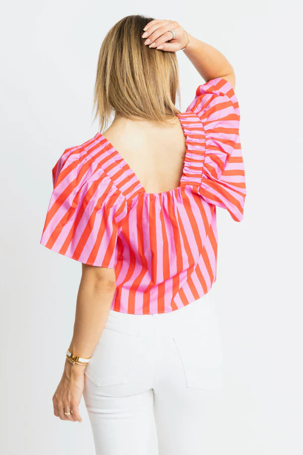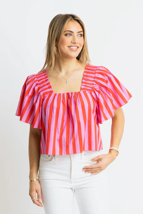 Add a splash of fun to your wardrobe with the Savannah Pink & Red Striped Top! Its lively stripes and vibrant colors bring a cheerful vibe to any outfit. Perfect for brightening up casual days or layering for a playful twist, this top combines comfort with eye-catching style effortlessly.
