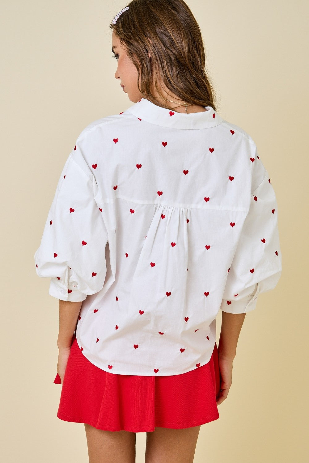 Valentine's Embroidered Hearts Oversized Top