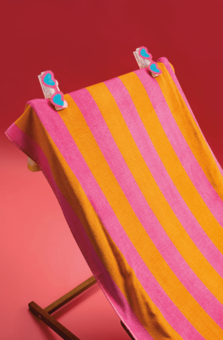 Vibrant and practical, this Orange Beach Towel & Clip Set is perfect for your seaside adventures. The 3-piece set includes a plush terrycloth beach towel, measuring 27 1/2" x 55", crafted from 100% cotton for ultimate softness and absorbency. Accompanying the towel are two durable icon acrylic beach chair clips, each 4 1/2" in size, designed to keep your towel securely in place on breezy days. Ideal for beach outings, poolside lounging, or picnics, this set combines functionality with style, ensuring you enjoy a comfortable and hassle-free experience.