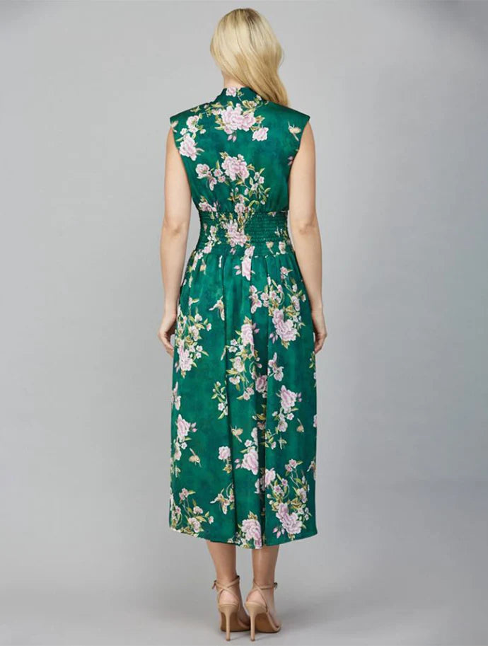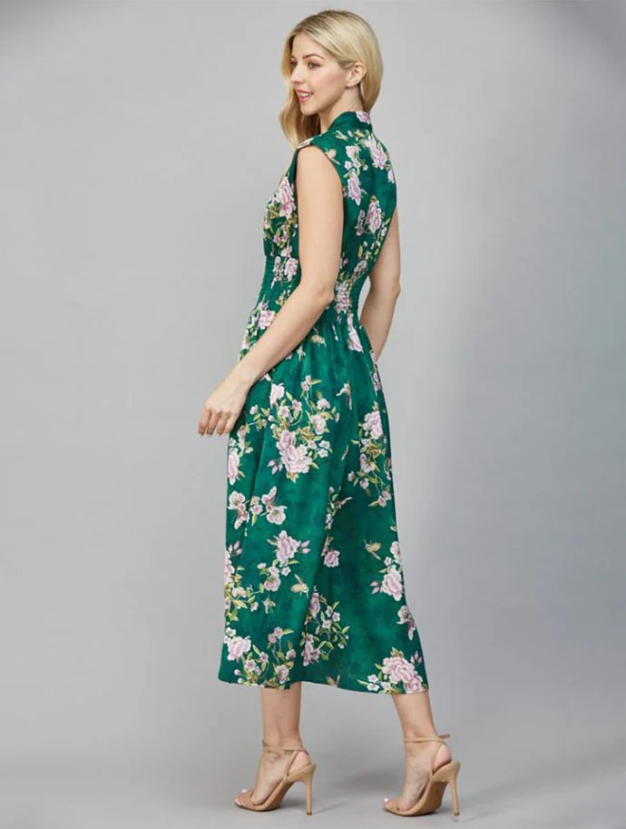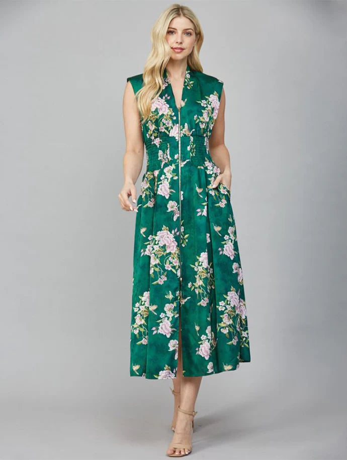 Jane Vintage Hunter Green Floral Zip Midi Dress