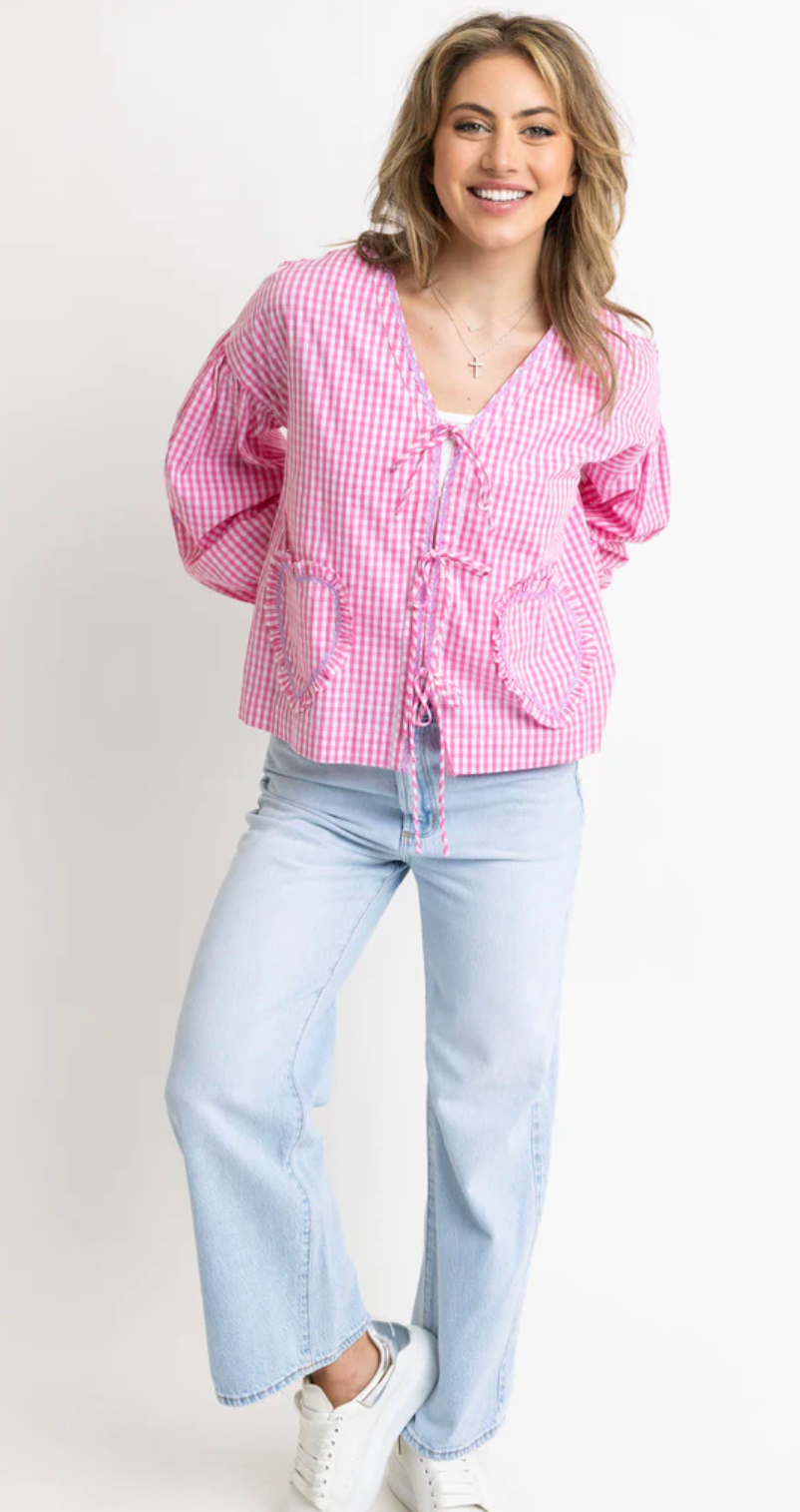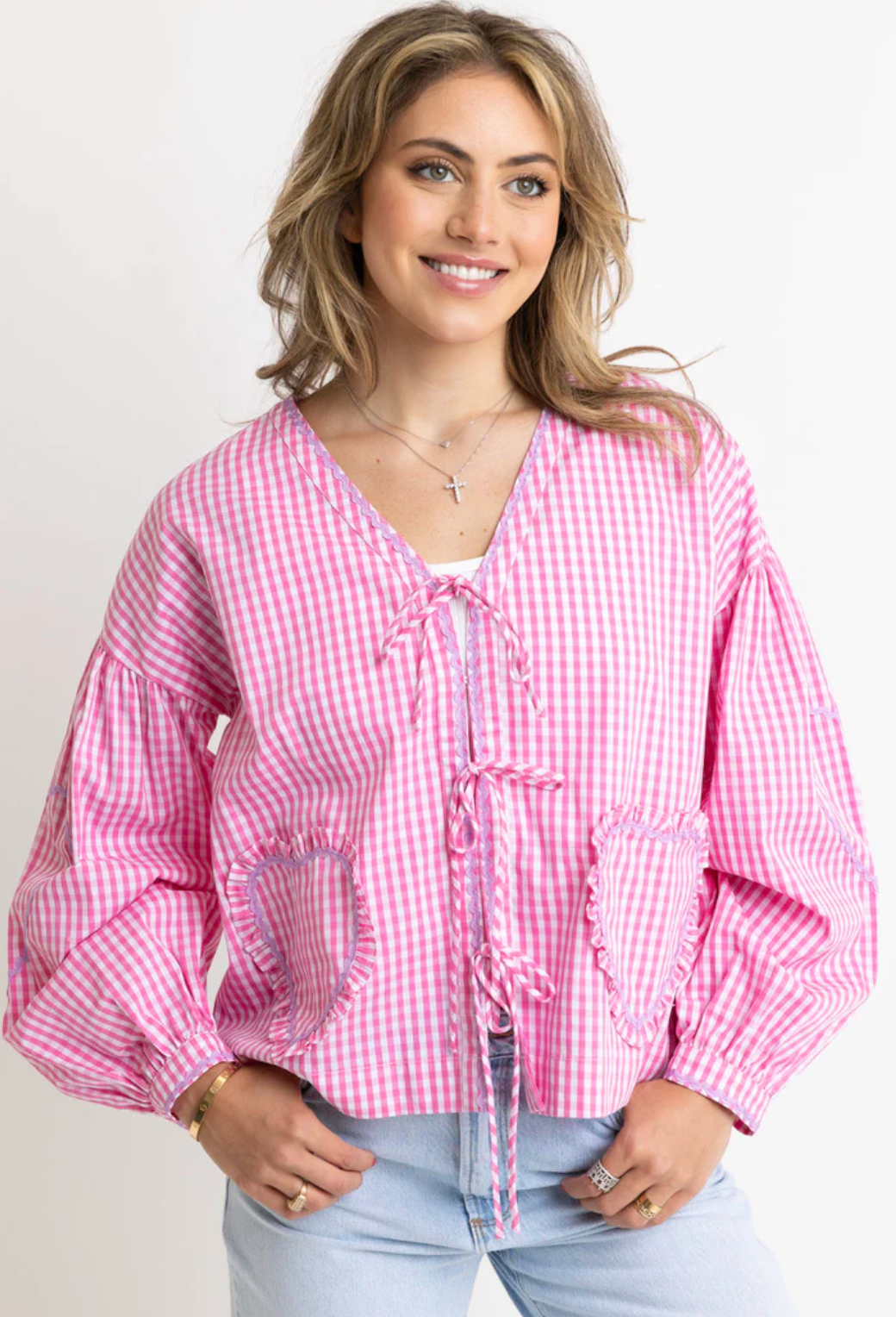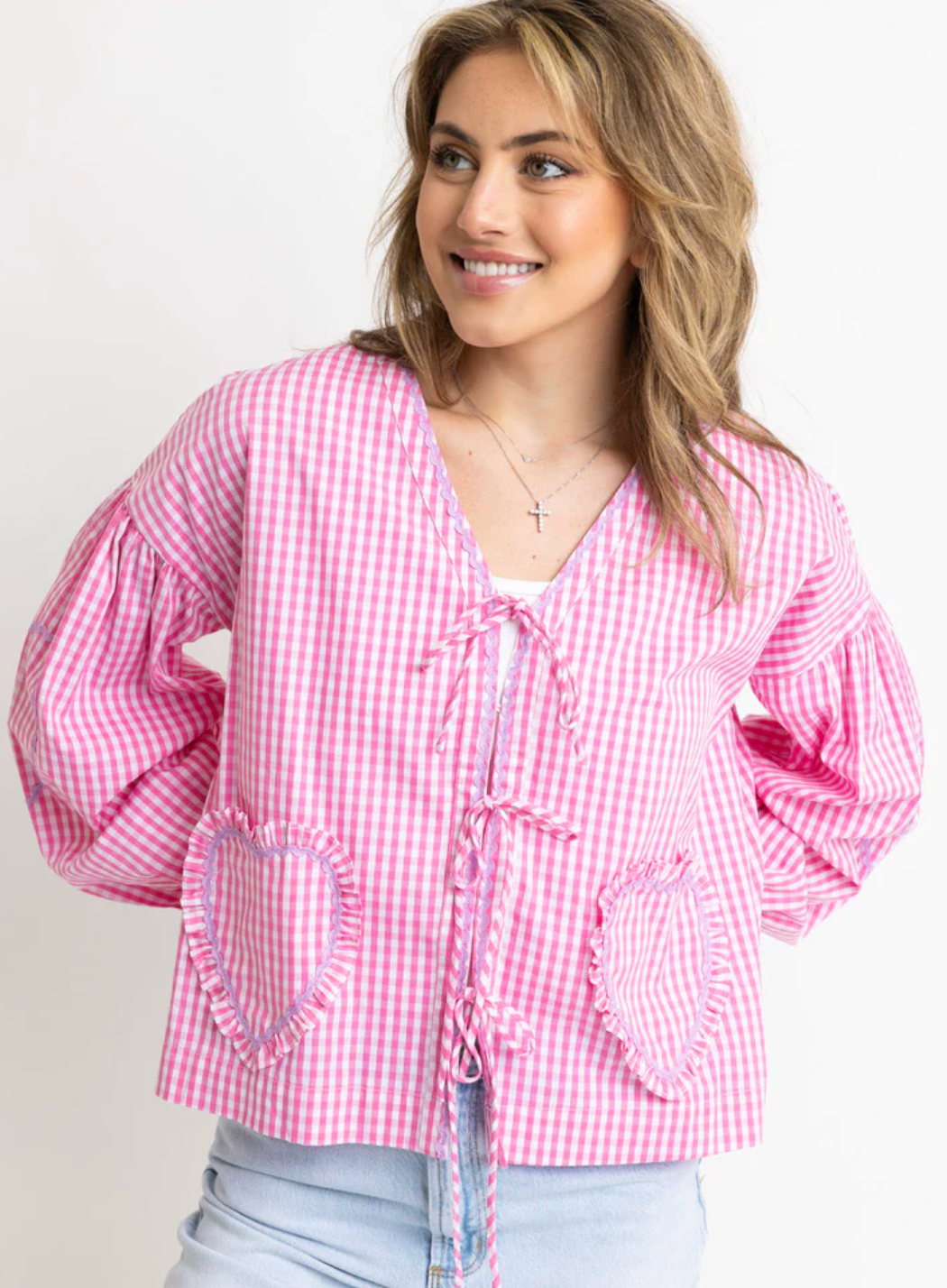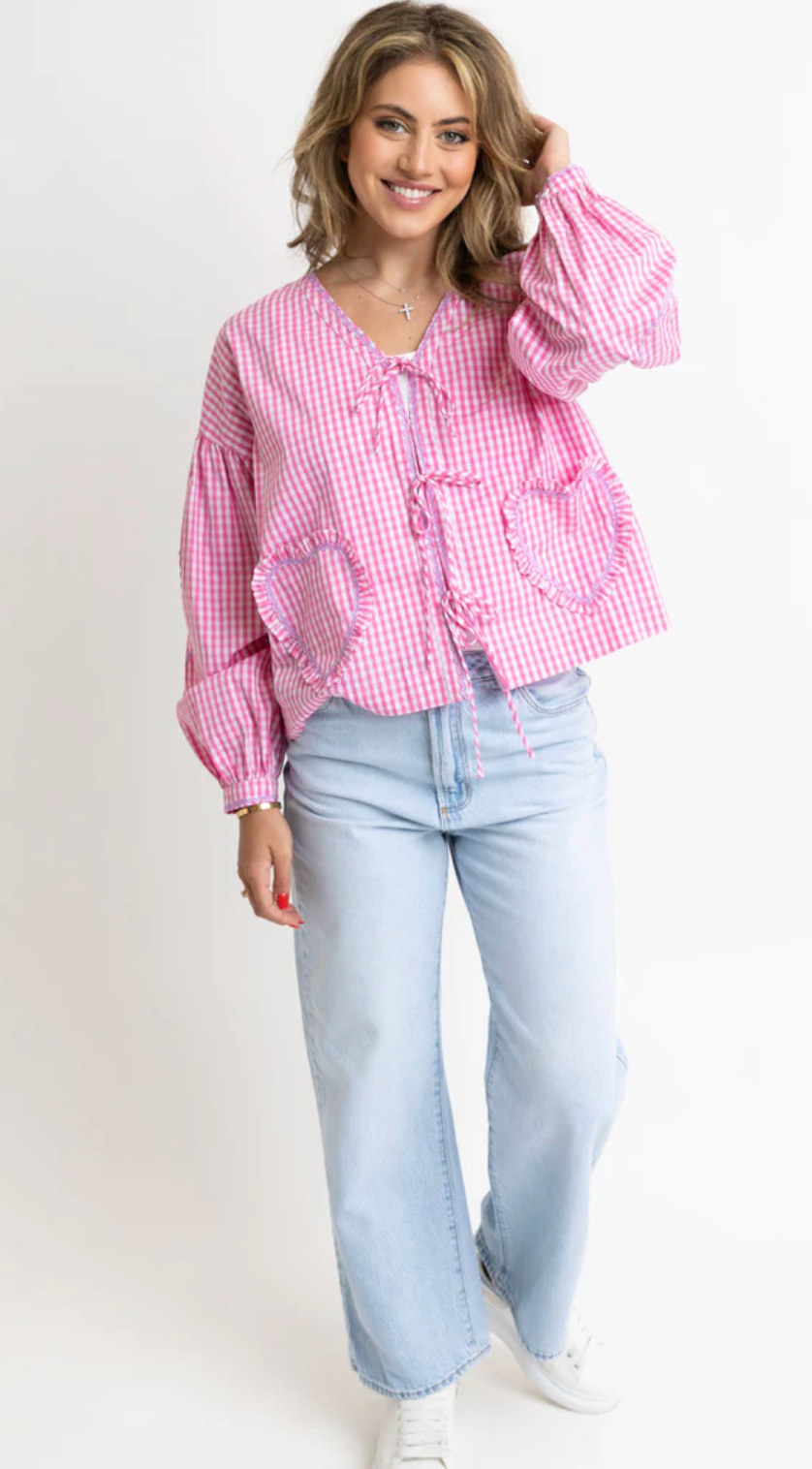 Adorable vintage-inspired top featuring a charming heart design layered over a classic check pattern. Perfect for adding a touch of retro romance to your everyday wardrobe. The playful mix of prints creates instant visual interest, while the timeless silhouette keeps it versatile enough to dress up or down.